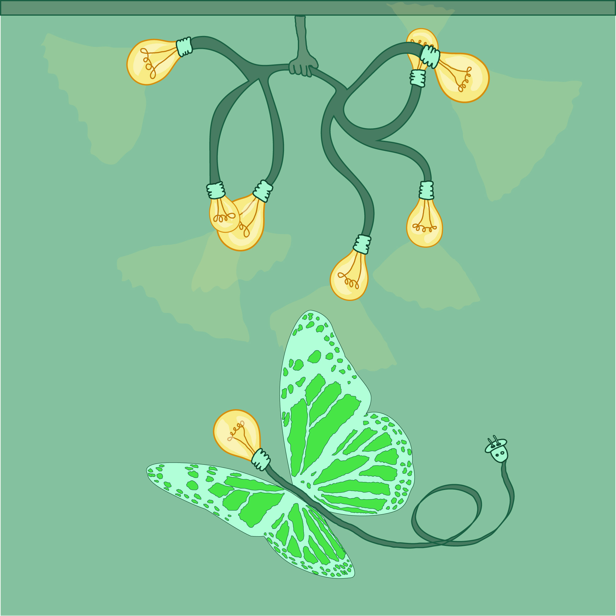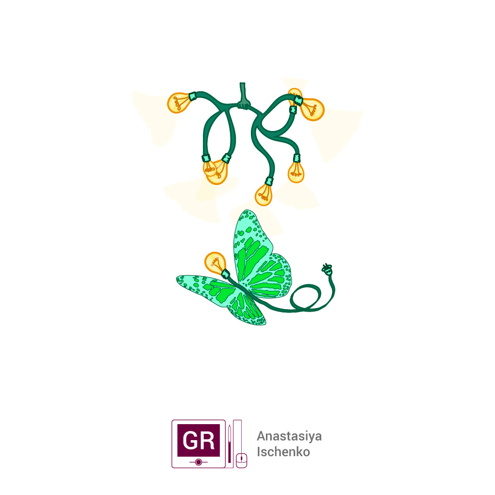 Бабочка с лампами. Концепт идеи глобализации.