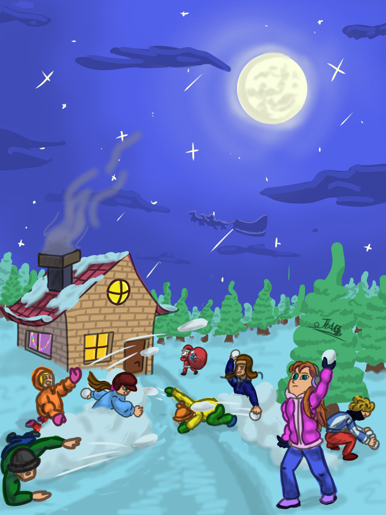 Иллюстрация игры в снежки для детской книги.