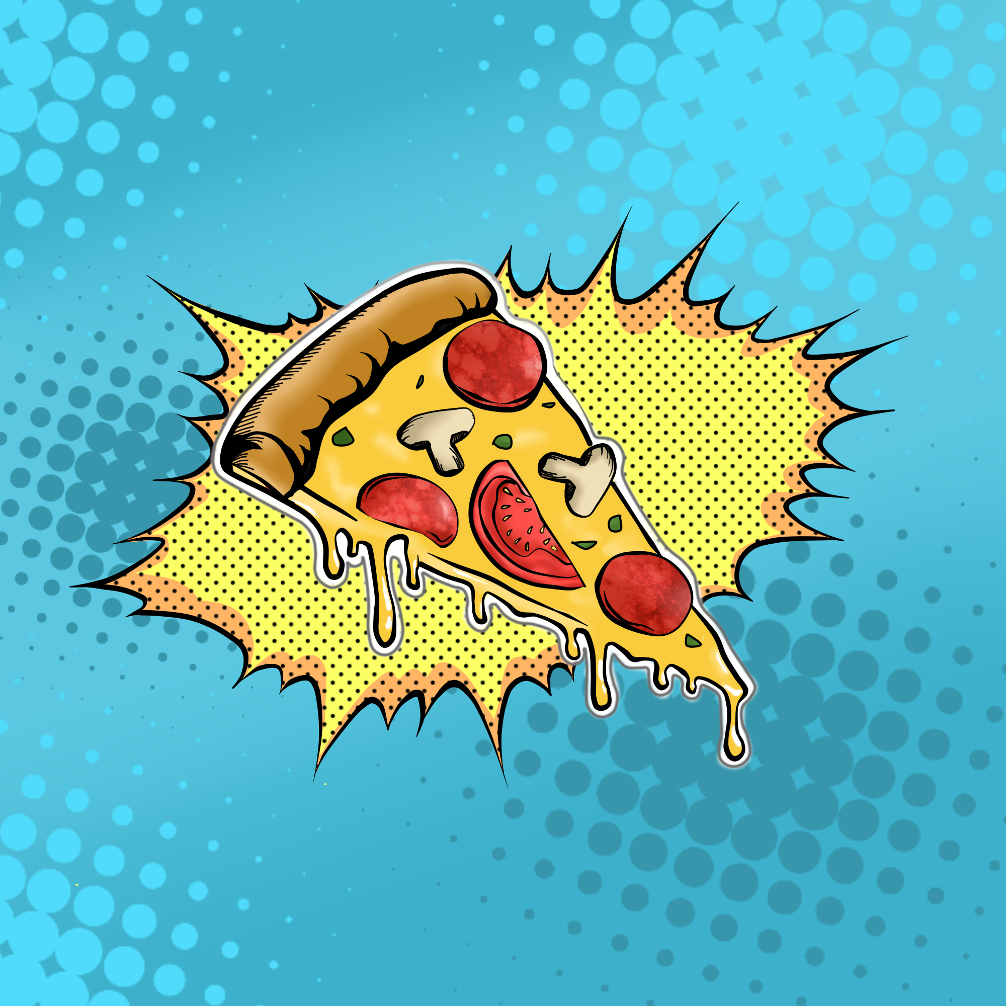 Иллюстрация "пицца" в поп арт стиле