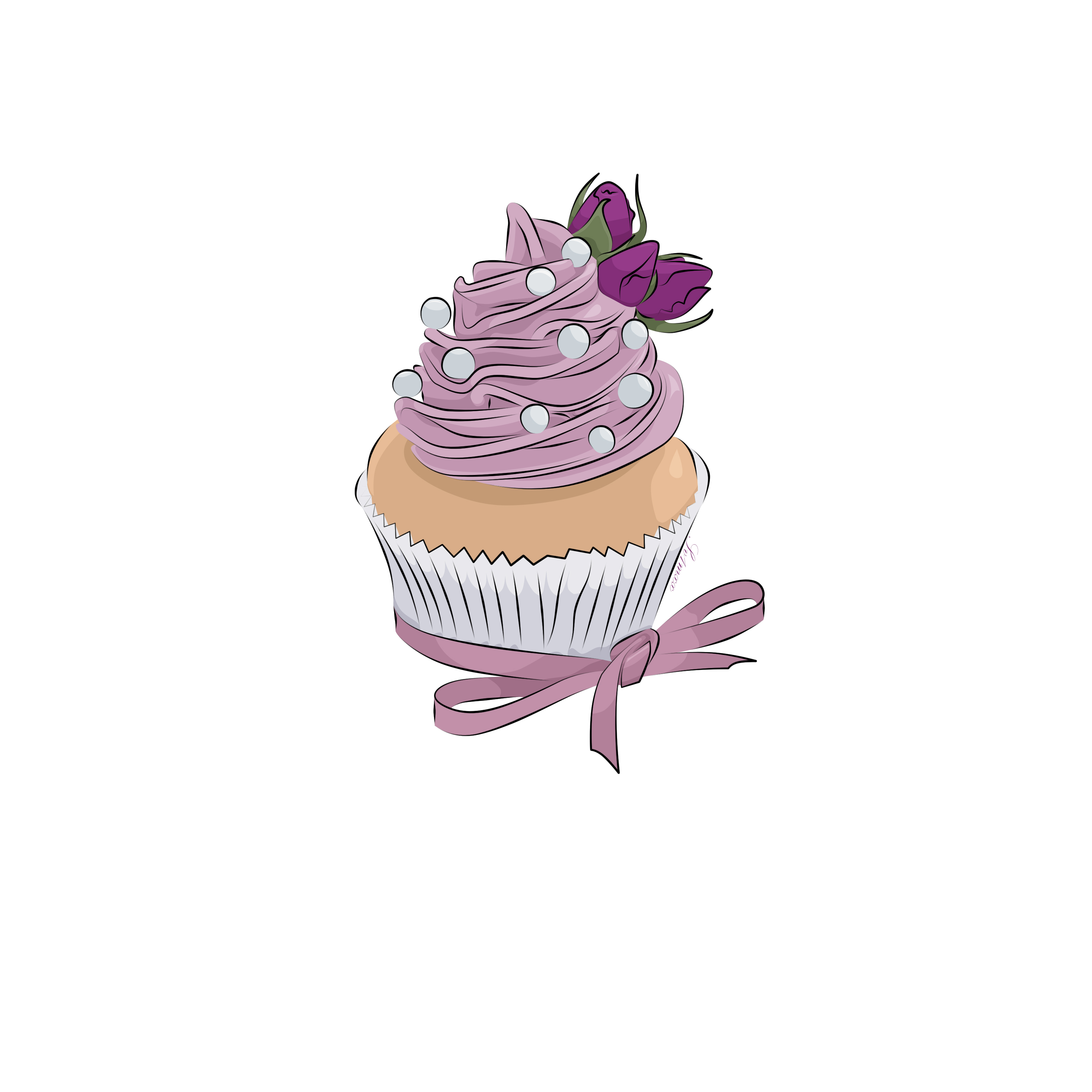 Кексик с розовым кремом, бусинами и цветками