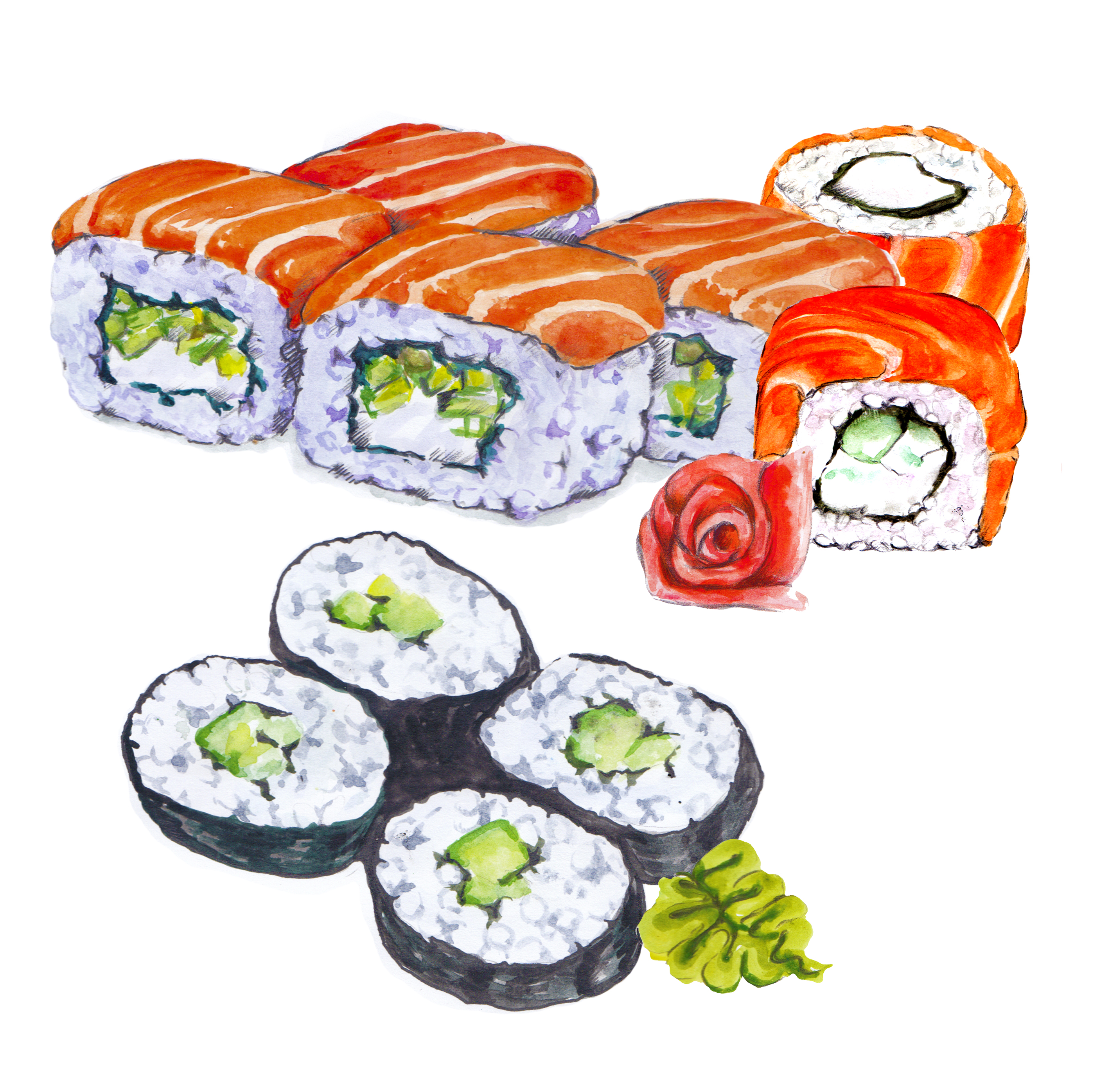 роллы акварель