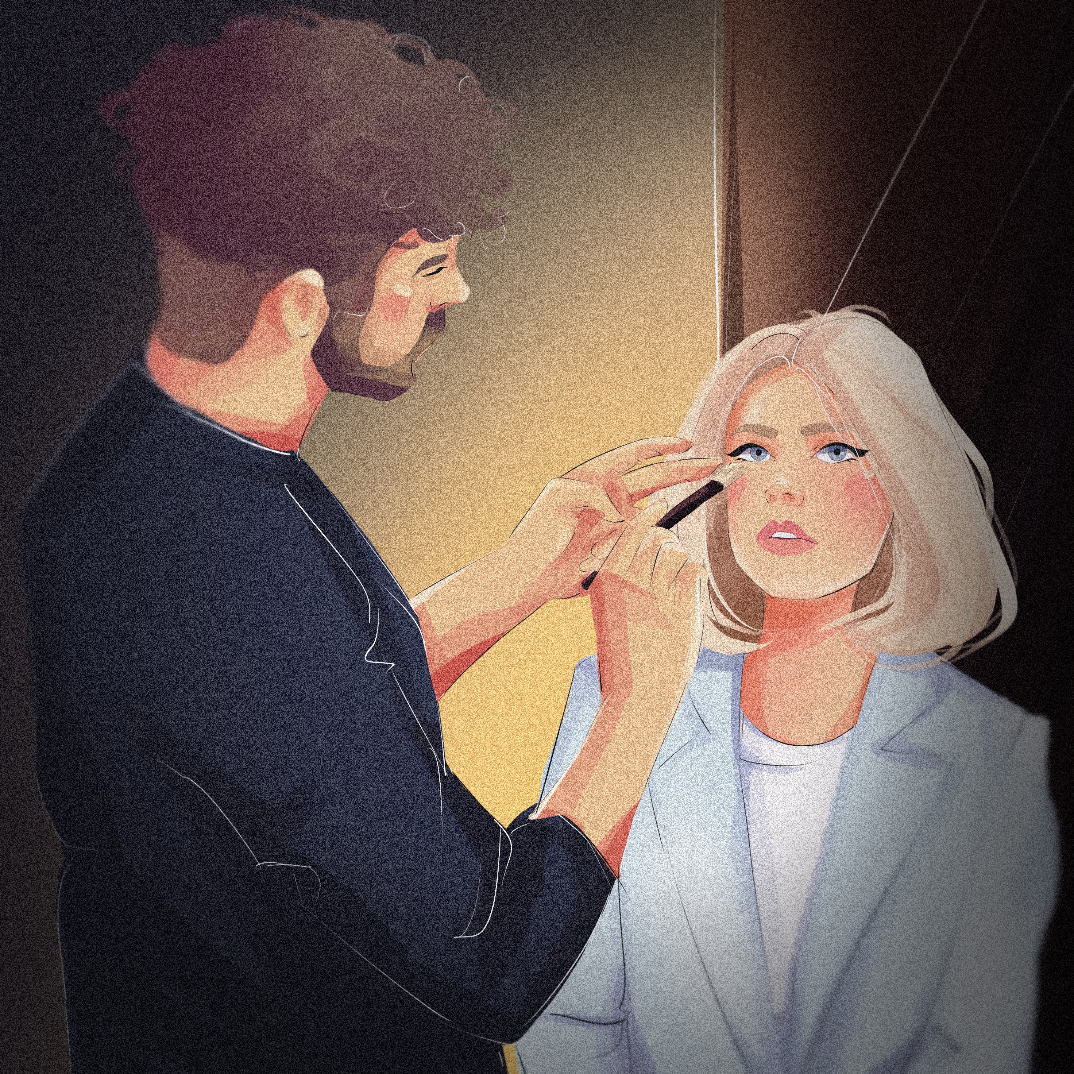 Процесс нанесения макияжа модели в иллюстрации