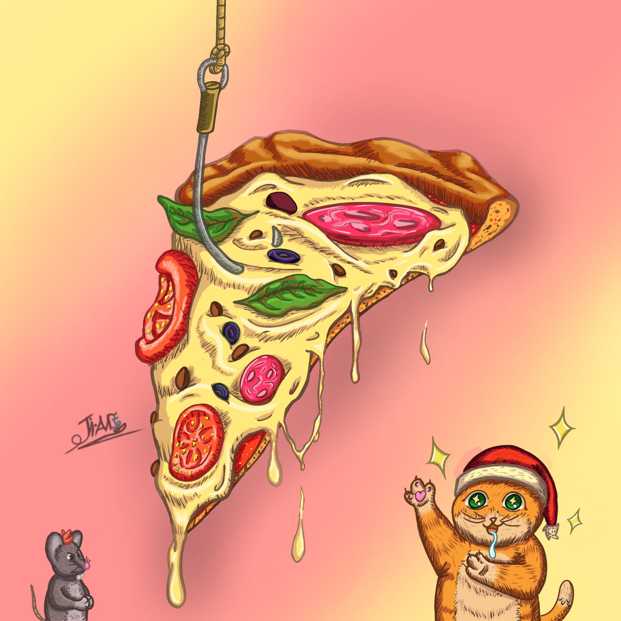Кот обожающий пиццу очарован и тянется к ней, понимая и видя, что это опасно. Мышь наконец-то подготовила идеальную ловушку для этого кота. Интересно, как будут разворачивается их события дальше?
