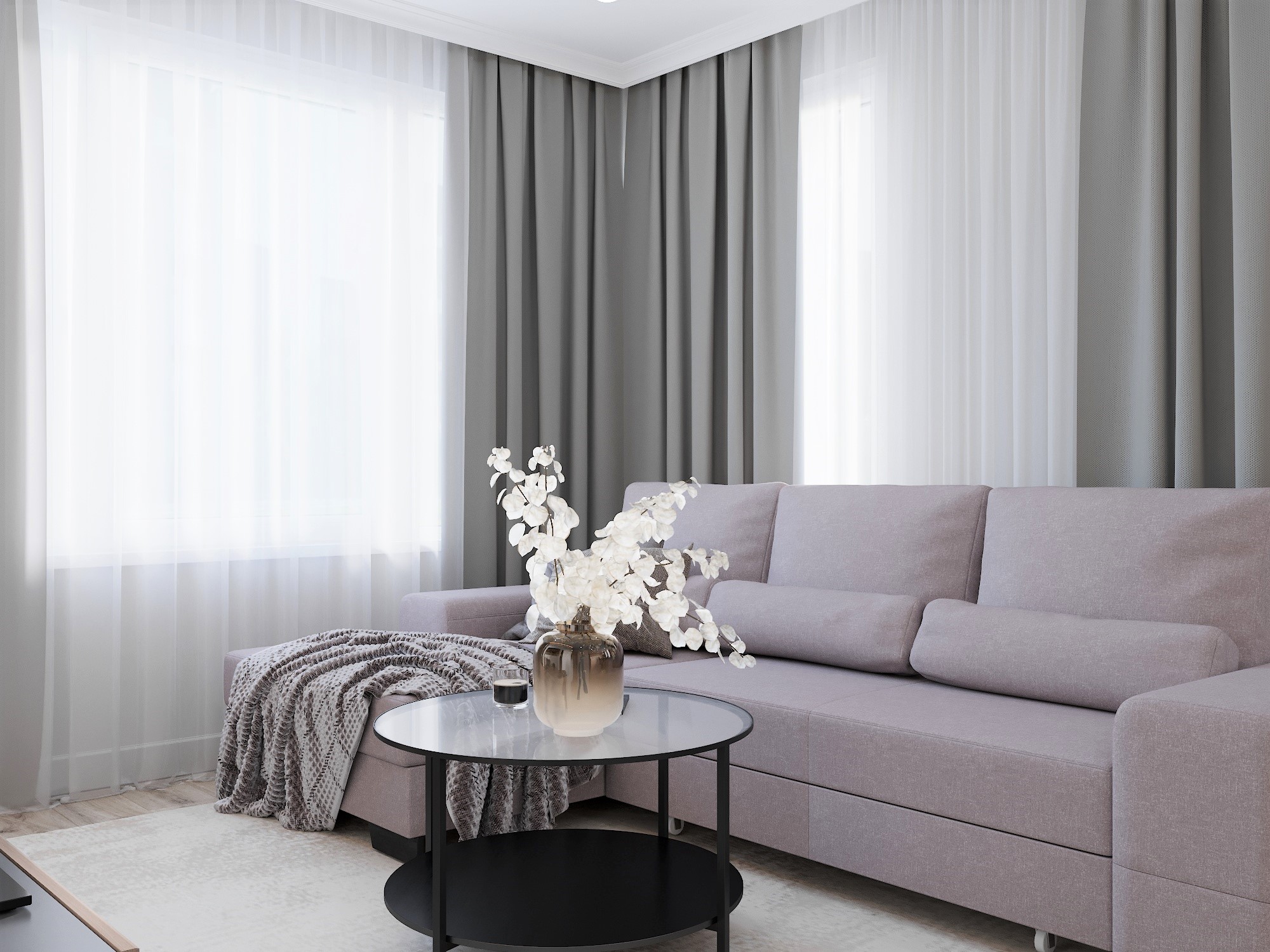 В пространстве этой кухни-гостиной приятно и пообедать всей семьей за круглым столом, и посмотреть фильмы, разместившись на удобном диване. Лаконичность и функциональность интерьера удалось передать с помощью 3d визуализации.