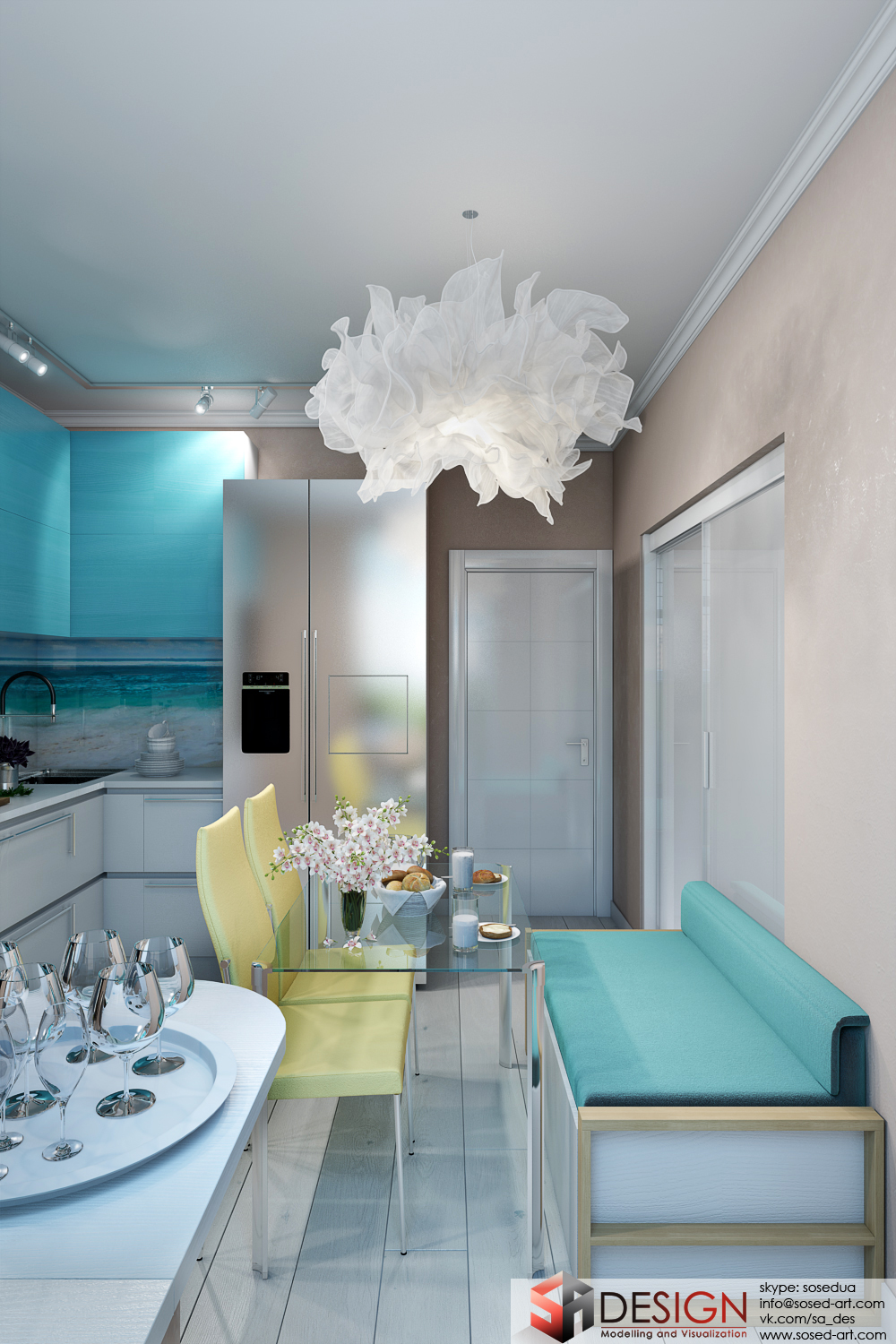 Визуализация кухни с балконом для Archivizer. 3ds max, V-ray, PS.
