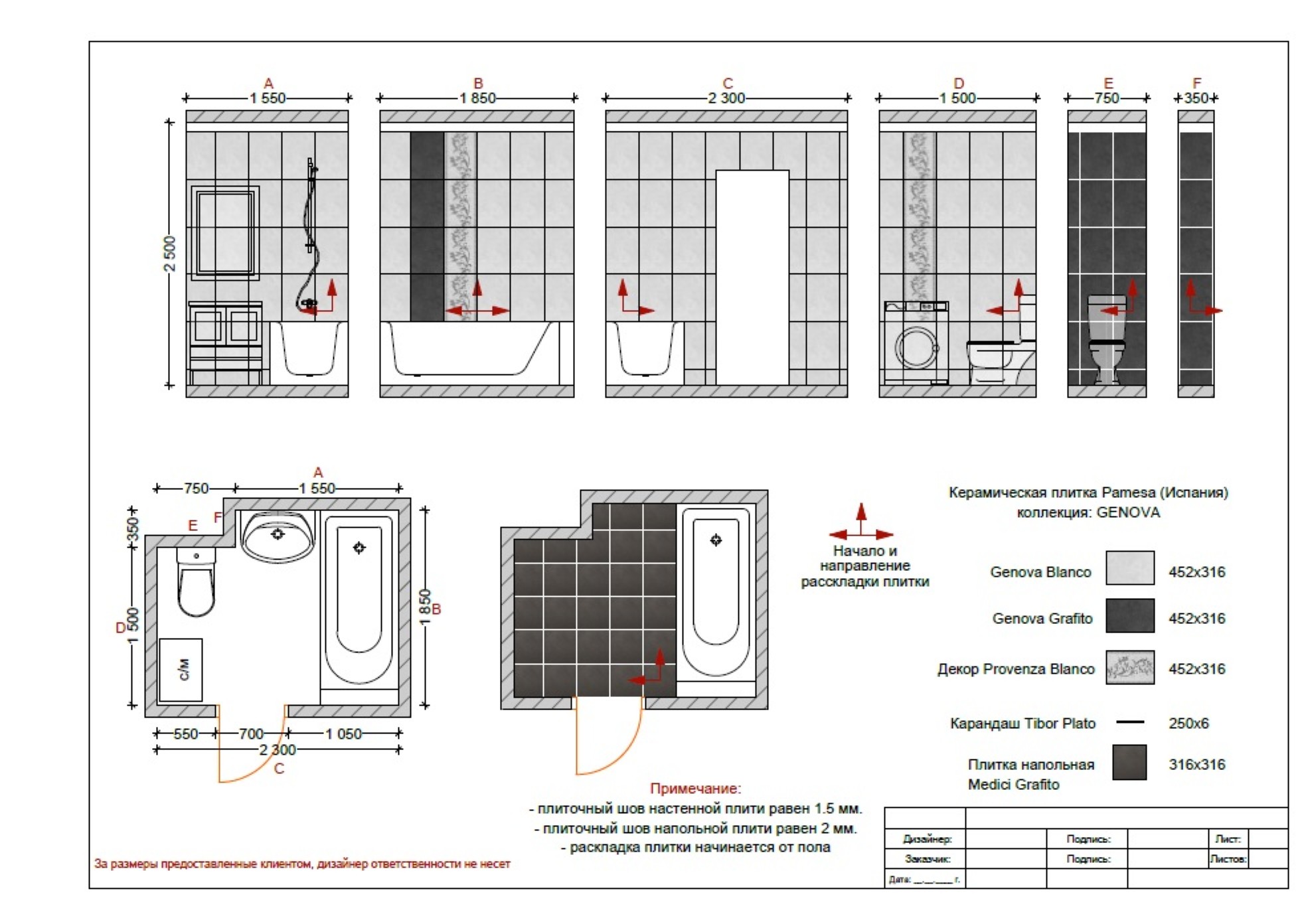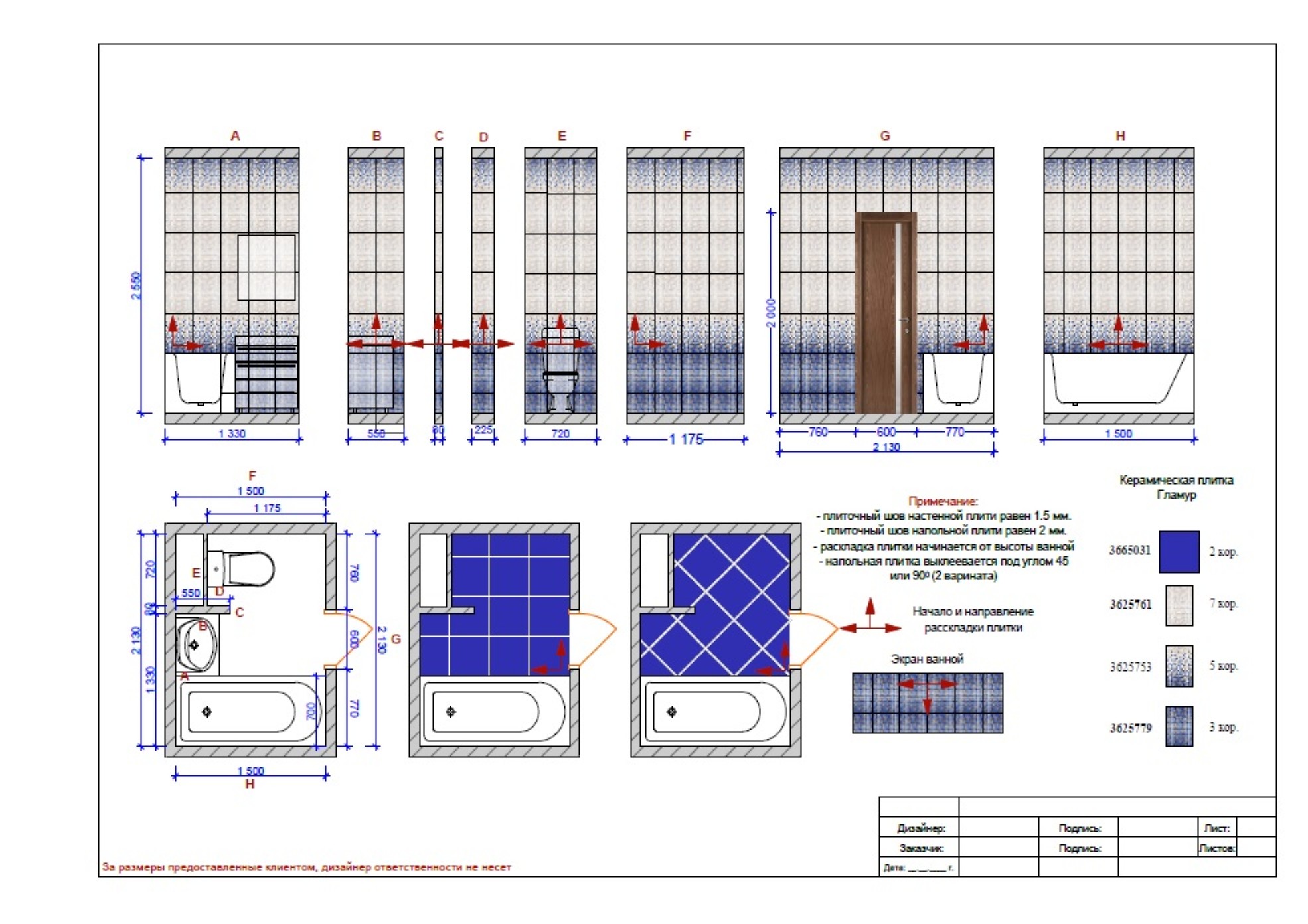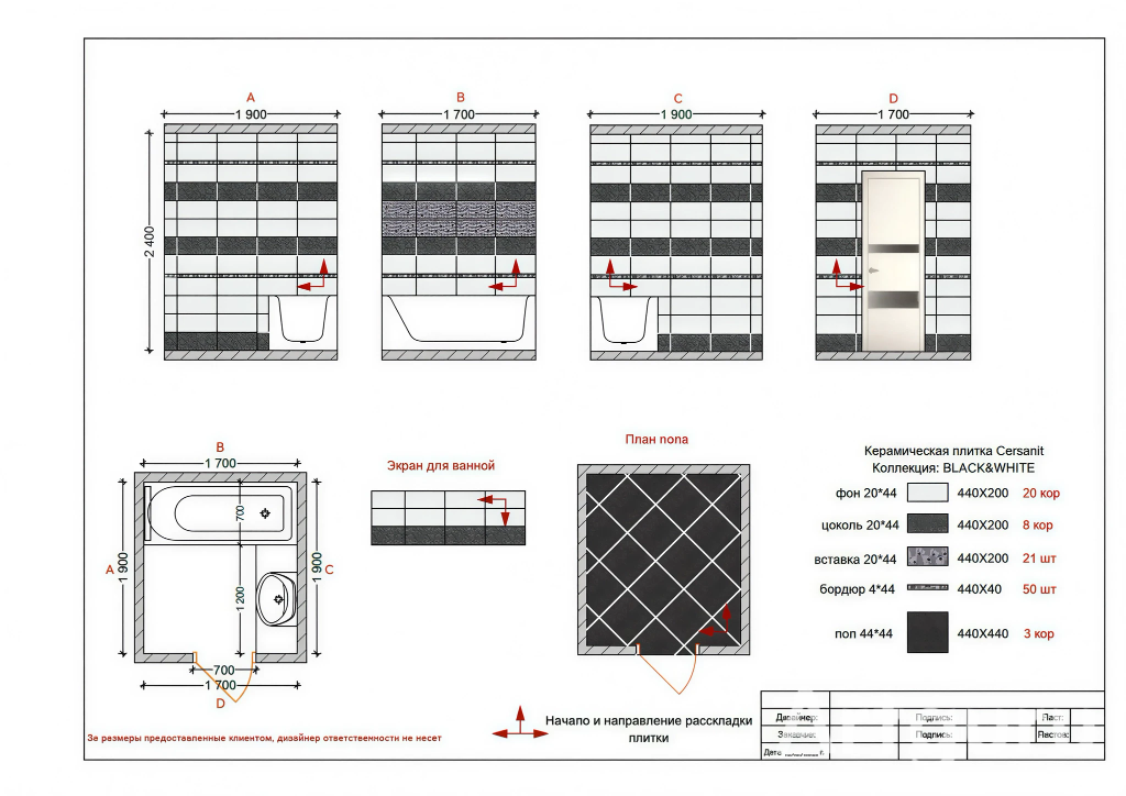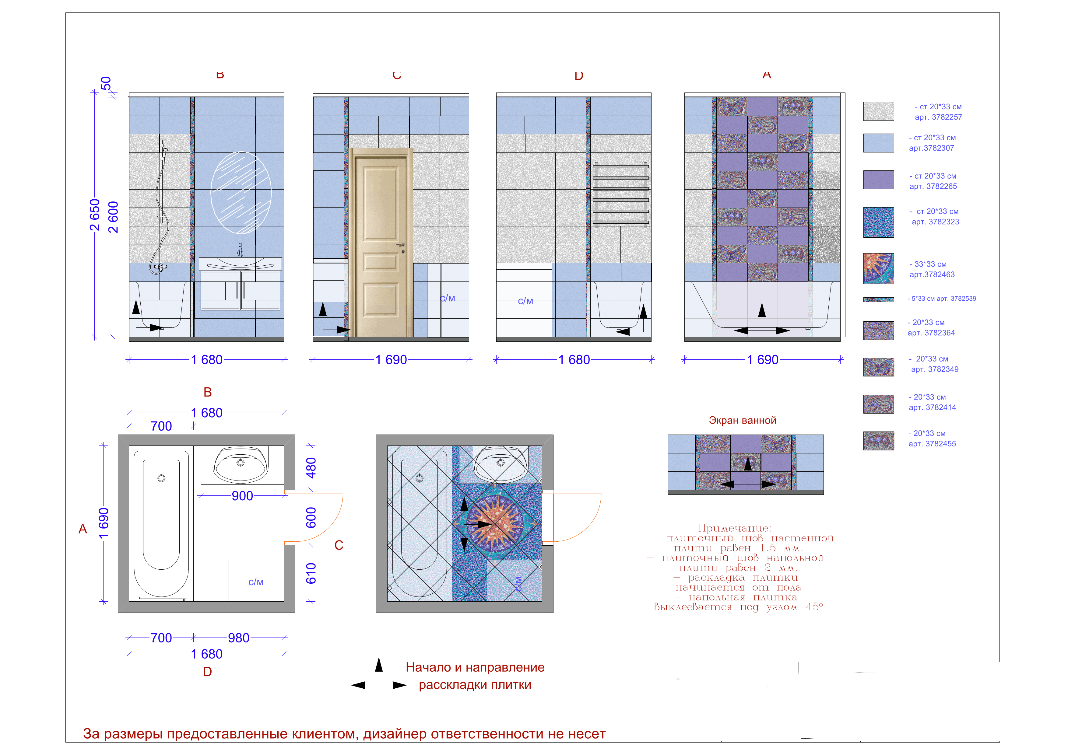 2D чертеж раскладки плитки, керамогранита, по размерам вашего помещения (ванная комната, санузел, кухонный фартук, душевая или двор), готовый план для мастера, расчет количества плитки.