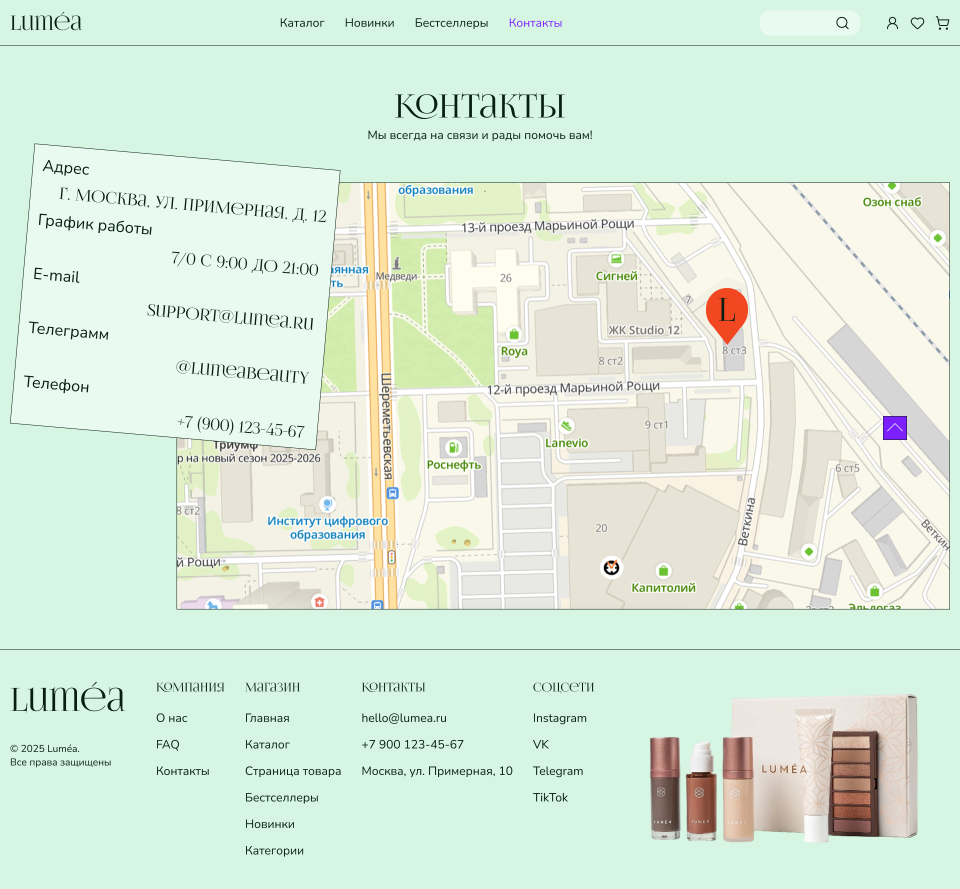 5. Контакты — данные бренда и форма обратной связи