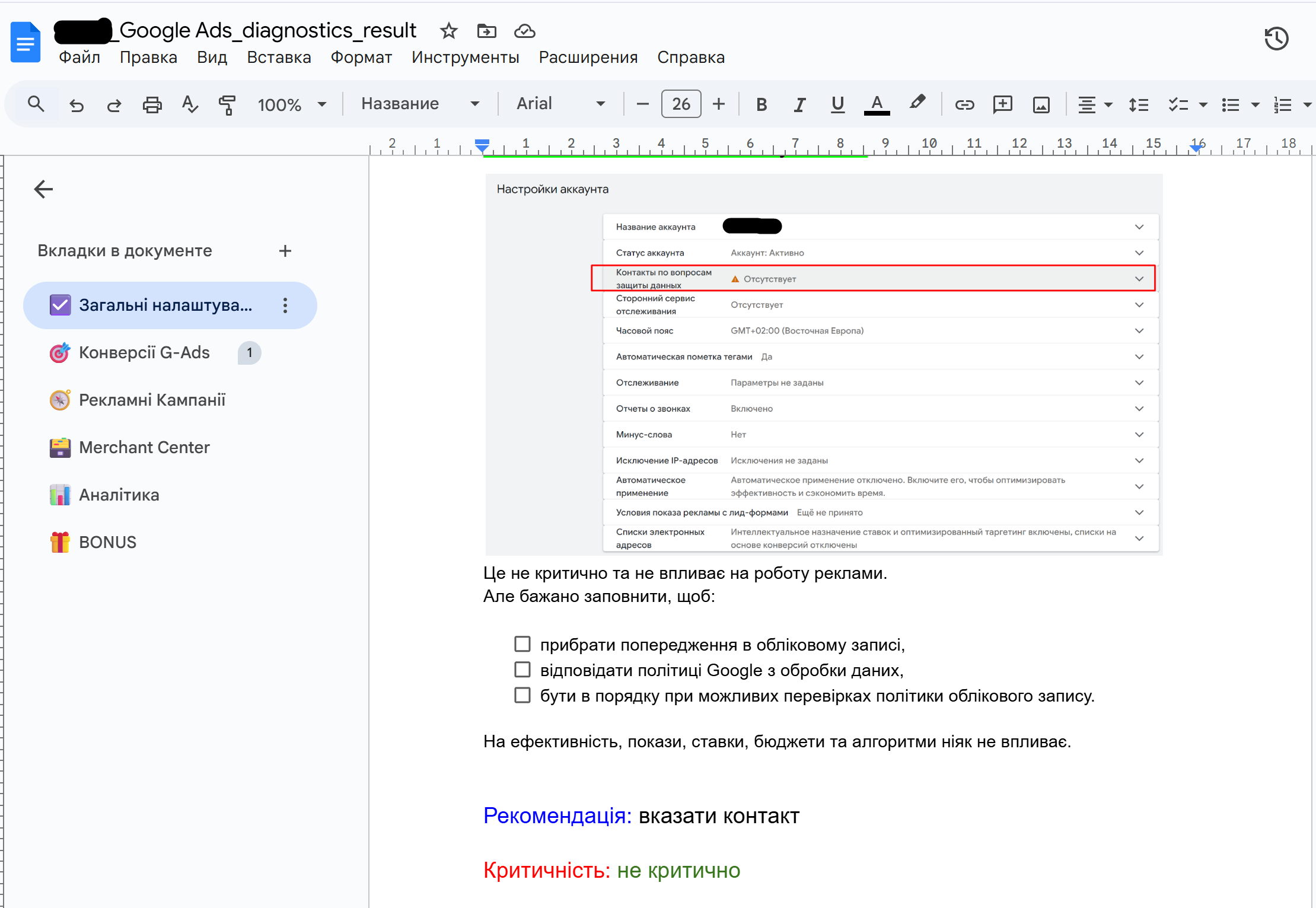 Формат работ: аудит рекламного аккаунта Google Ads