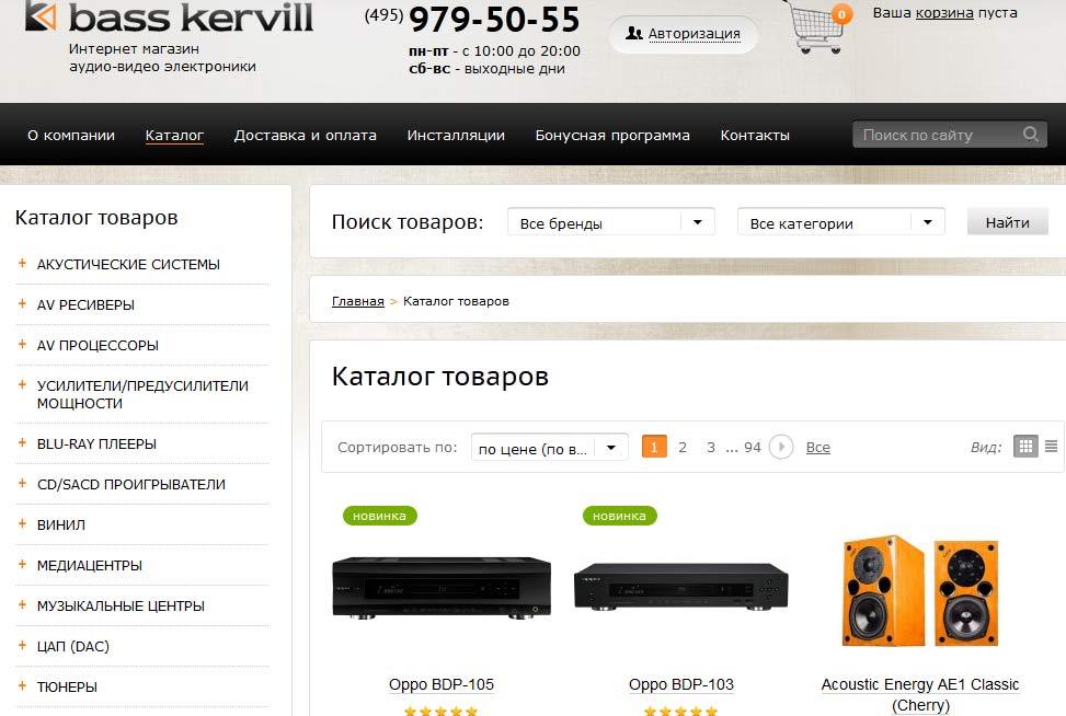 Интернет-магазин аудио-видео электроники www.basskervill.ru. Наполнение сайта контентом.