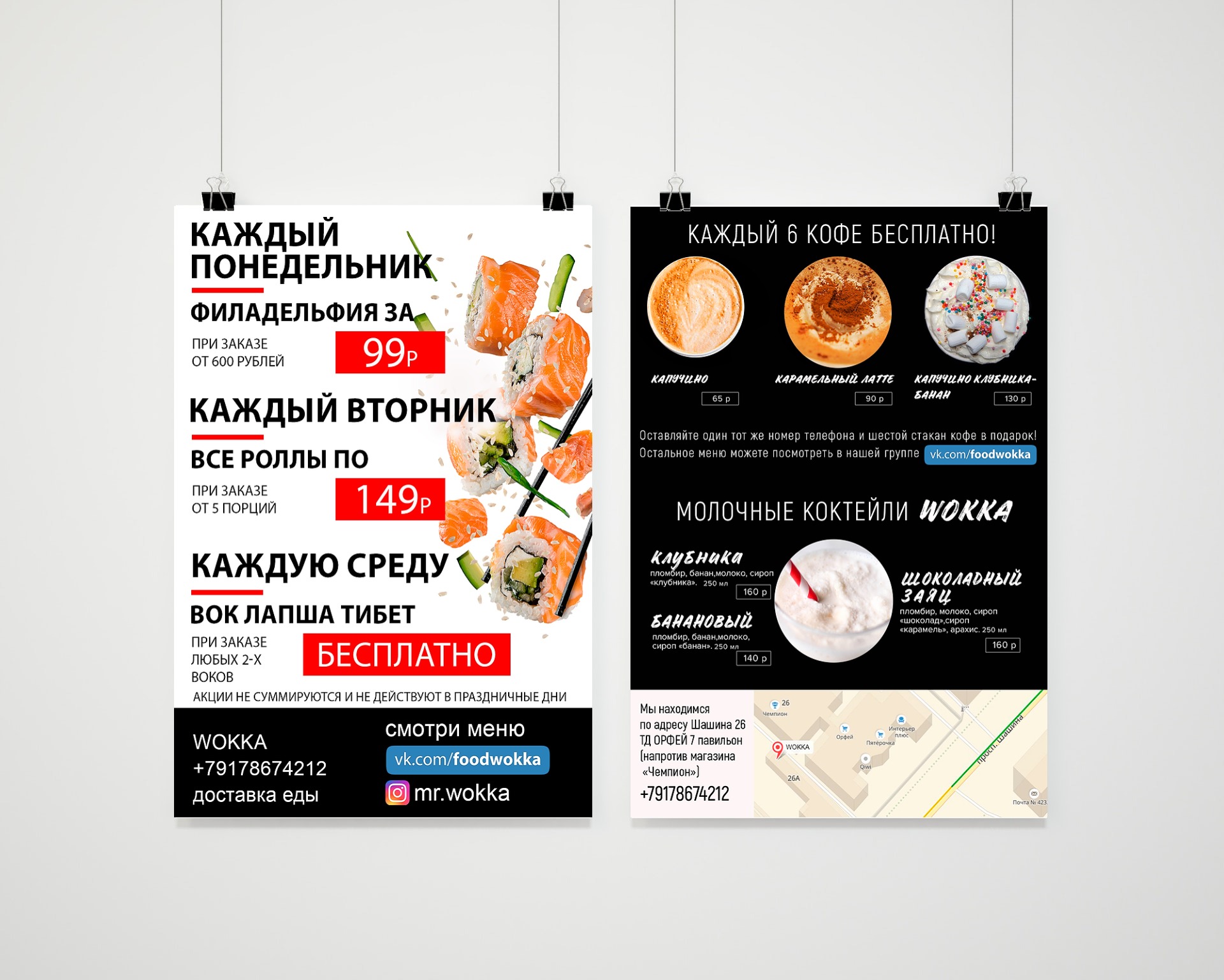 Листовка формата А6 для доставки еды "WOKKA"