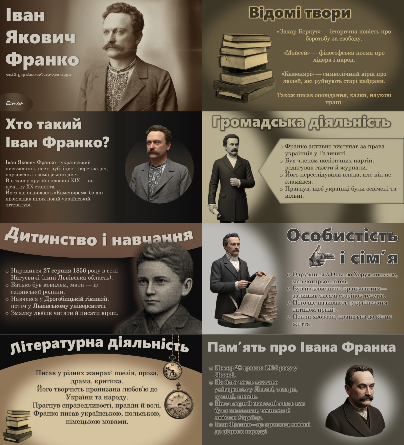 Розробка візуального оформлення для освітнього проєкту про життя Івана Франка.