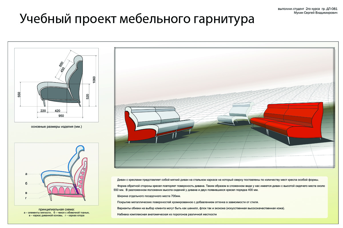 Учебный проект дивана и кресел