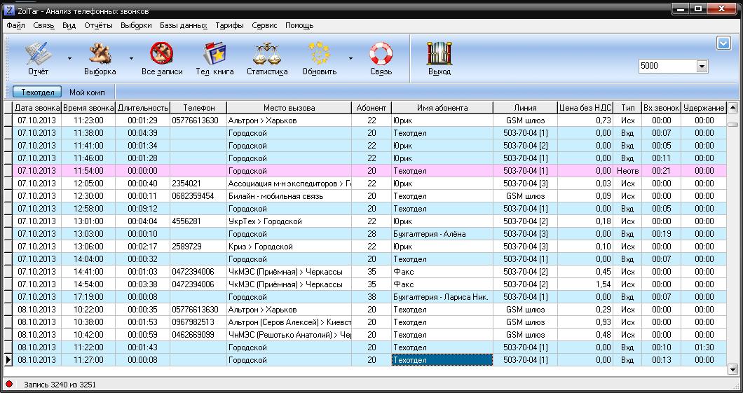 Программа тарификации ZolTar Хранит данные о звонках абонентов АТС (или сети АТС) в базе MySQL. Позволяет делать всевозможные отчёты, выборки и т.д. и т.п.