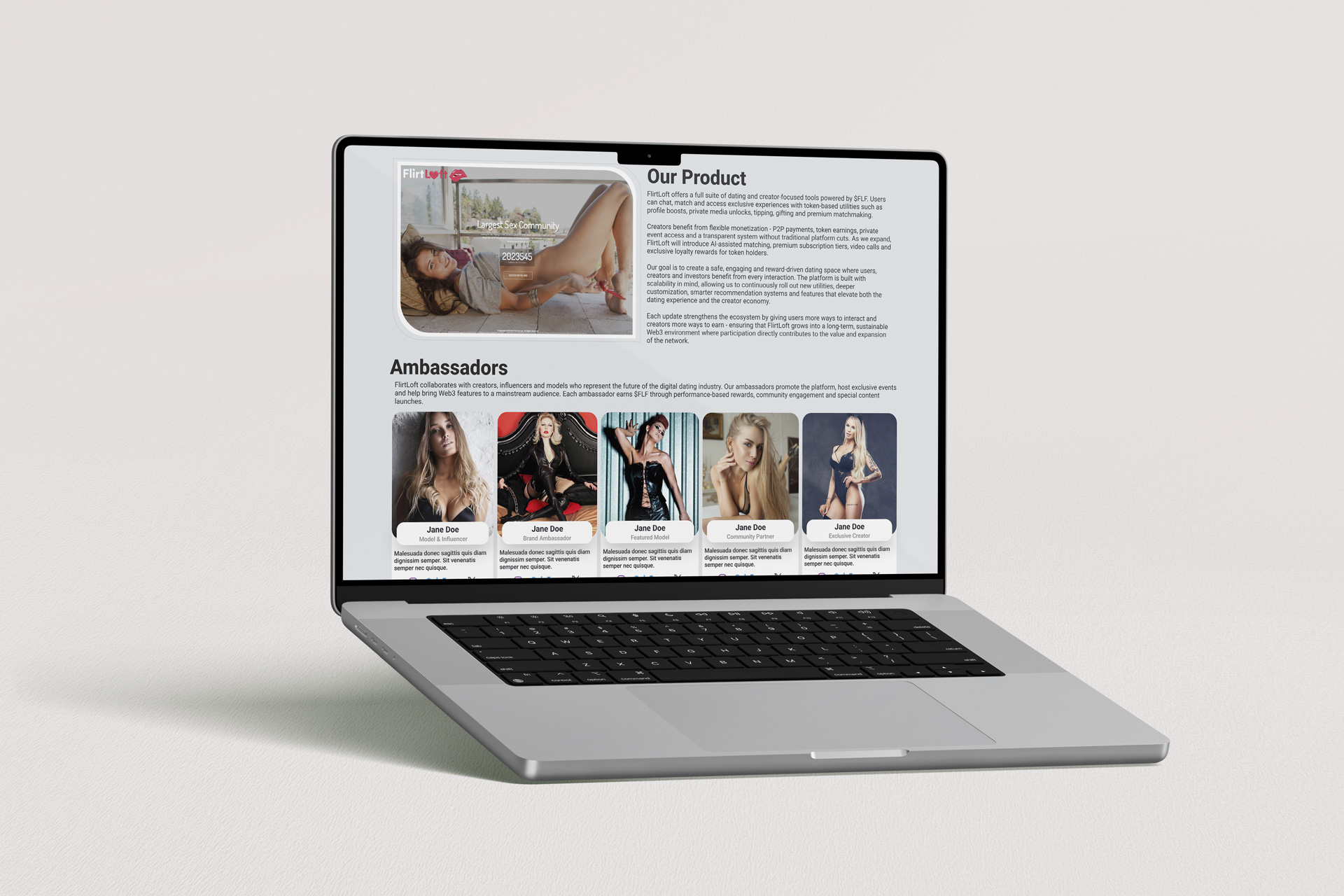 FlirtLoft - Web3-платформа для онлайн-знакомств с встроенной токен-экономикой. Проект реализован полностью: UI/UX-дизайн, фронтенд, BSC смарт-контракты и развёртывание рабочей платформы для живого использования.