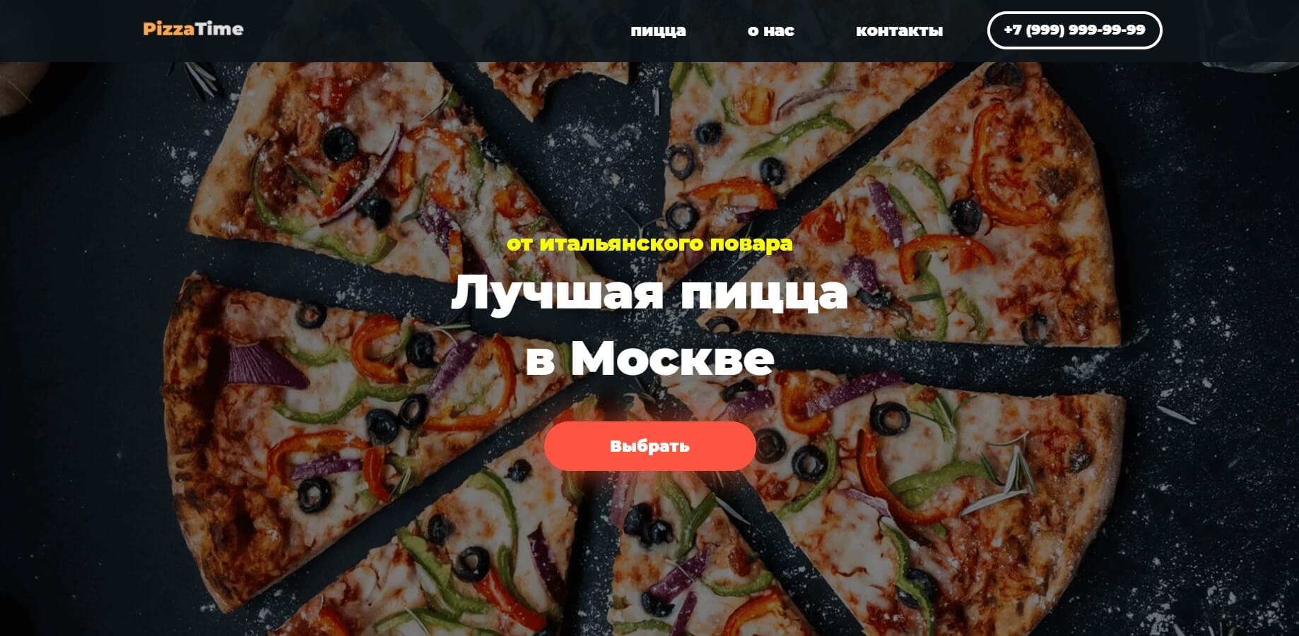 [h3]Бросающийся в глаза, одностраничный сайт для заказа пиццы.