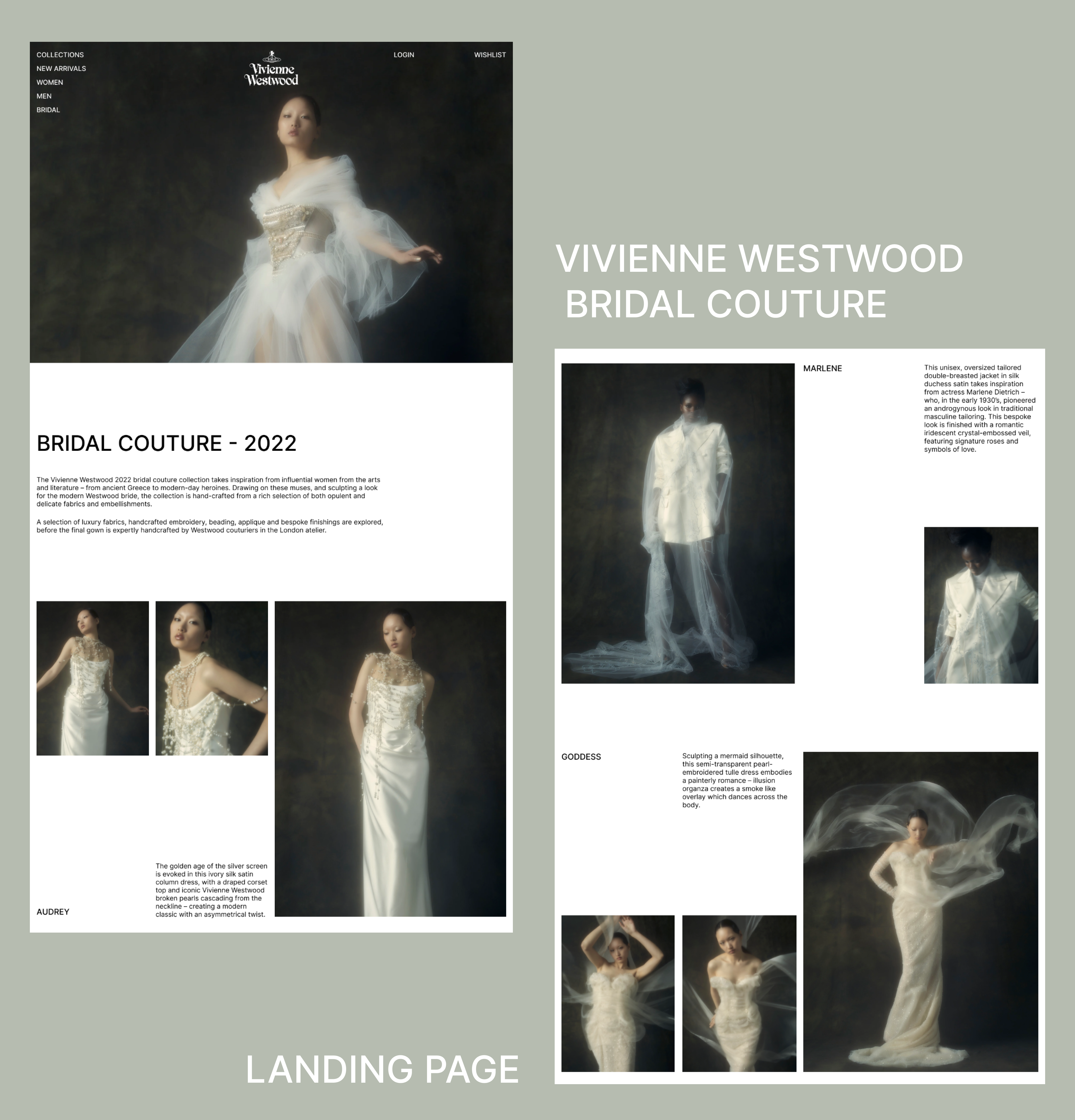 Задача: создать страницу сайта, иллюстрирующую свадебную коллекцию Vivienne Westwood. Работа в минималистичном стиле, который не только соответствует фирменному стилю бренда, но и подчеркивает его эксклюзивность.