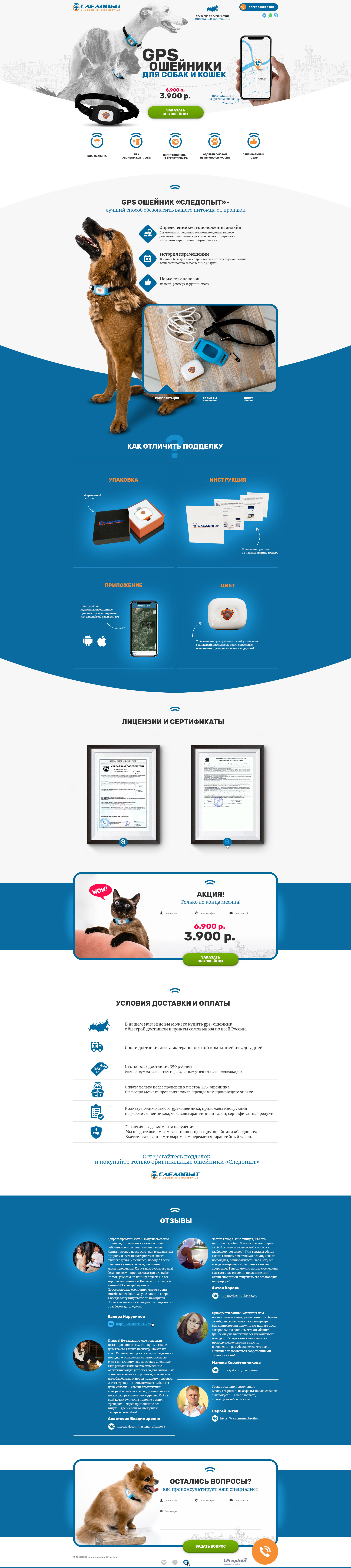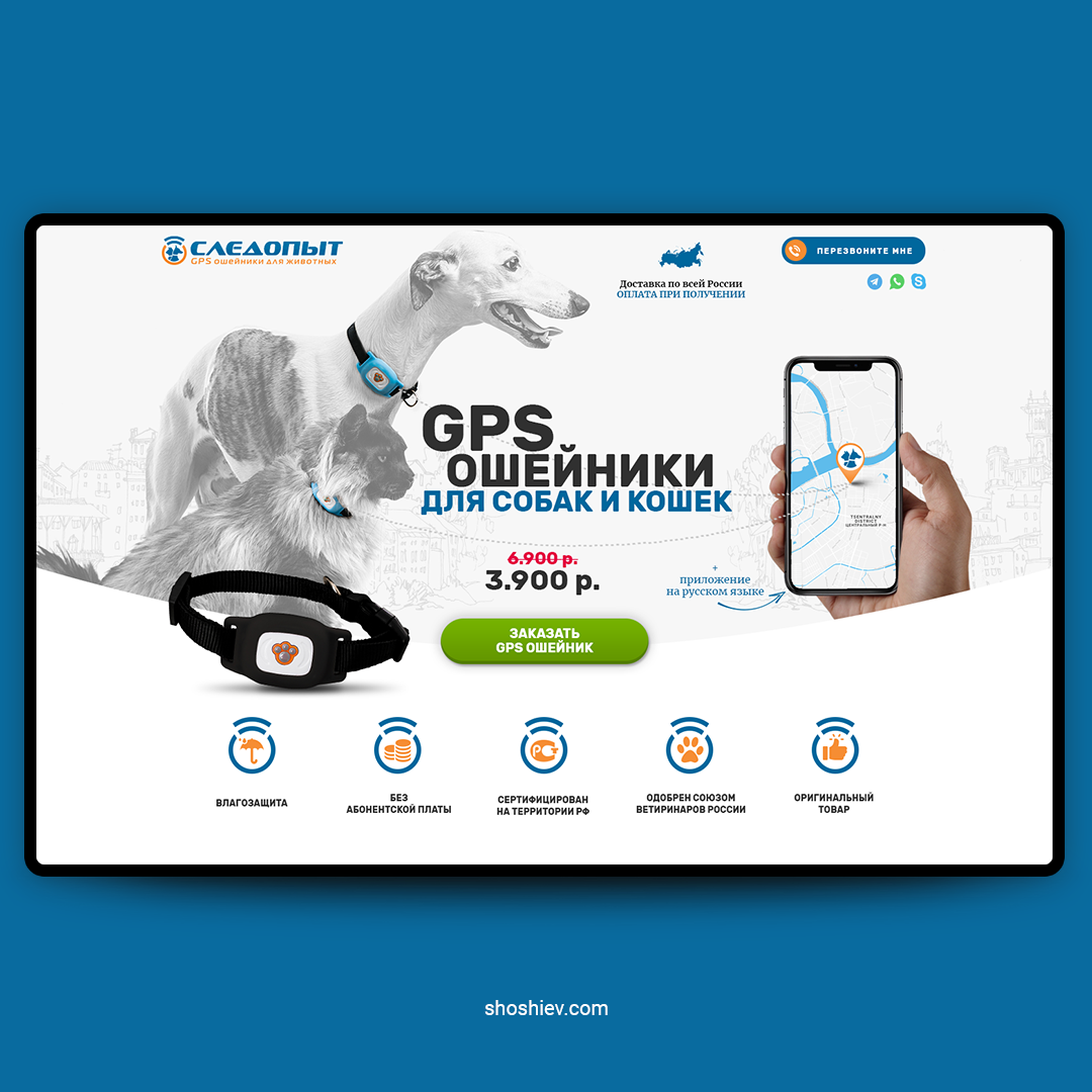 Лендинг. GPS ошейник «Следопыт»