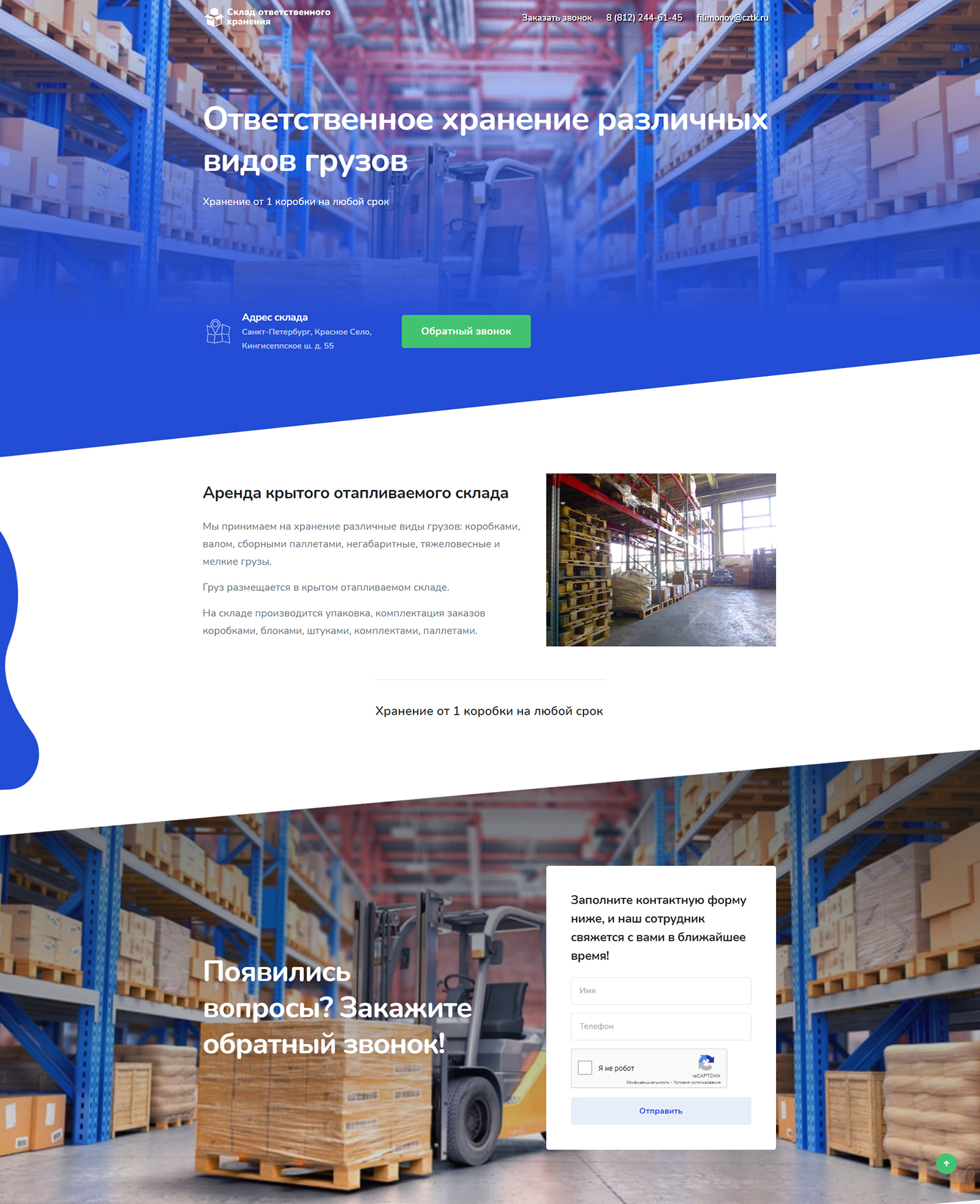 Лендинг сайт Склад ответственного хранения