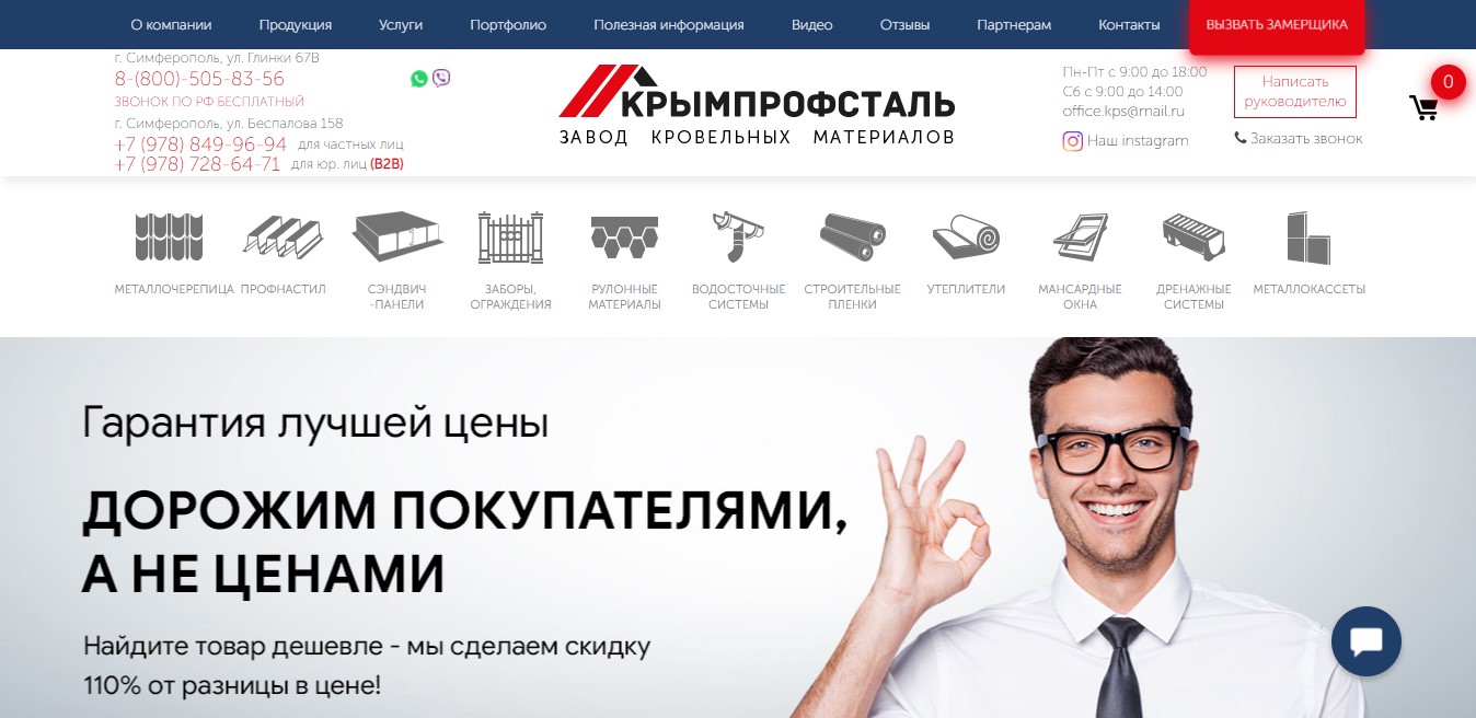 Продающий сайт для завода КРЫМПРОФСТАЛЬ