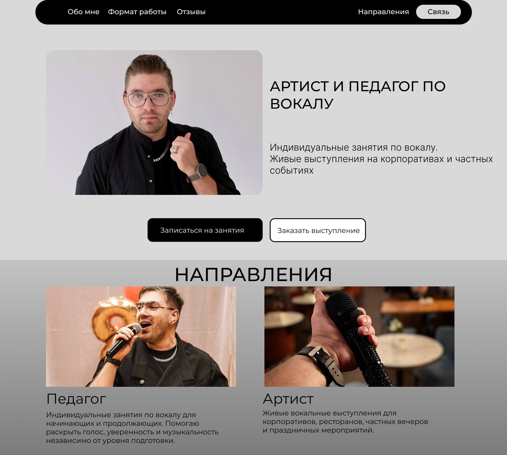 Сайт для артиста и педагога по вокалу