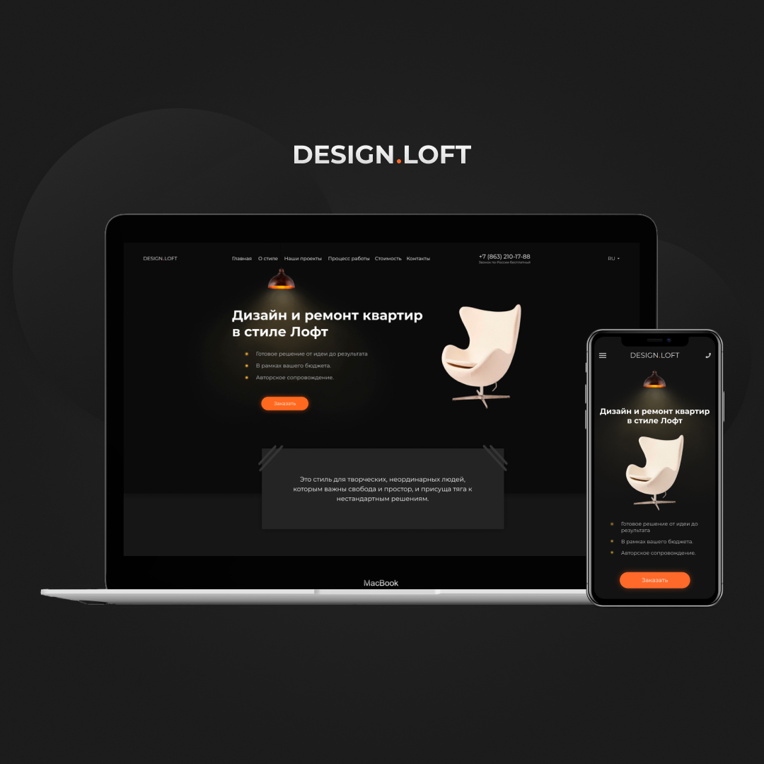Дизайн-концепт сайта и Вёрстка + адаптивность Ссылка на сайт - [url=http://www.shinkarenko.design/portfolio/designloft/index.html]http://www.shinkarenko.design/portfolio/designloft/index.html[/url]