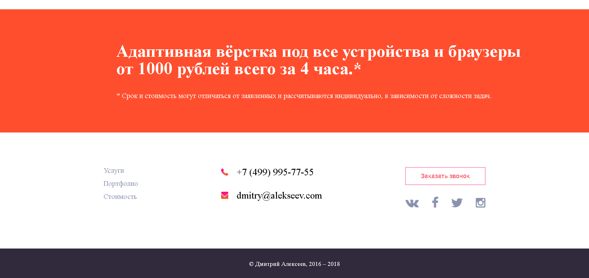 Простой пример того, как может выглядеть портфолио-сайт для специалиста.