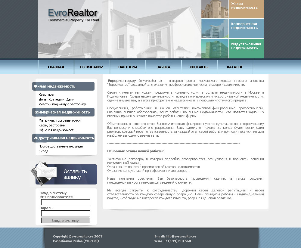 Сайт риэлторской компании.