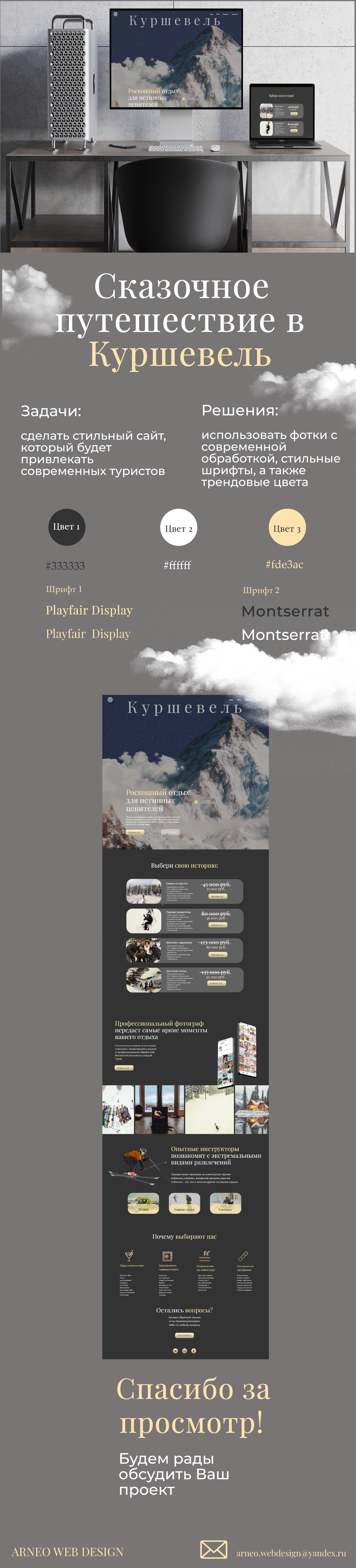 Сайт по продаже горнолыжных туров в Куршевель. Доступен по ссылке: http://arneowebdesign.tilda.ws/courcheveltravel