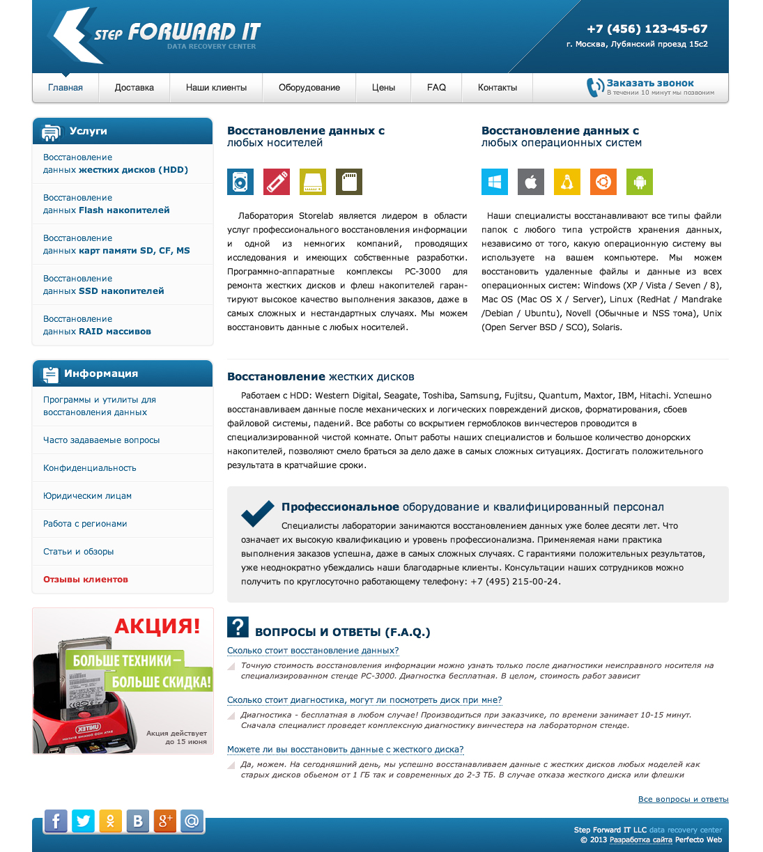 http://stepforward-it.net Сайт под ключ для сервиса по восстановлению данных с носителей