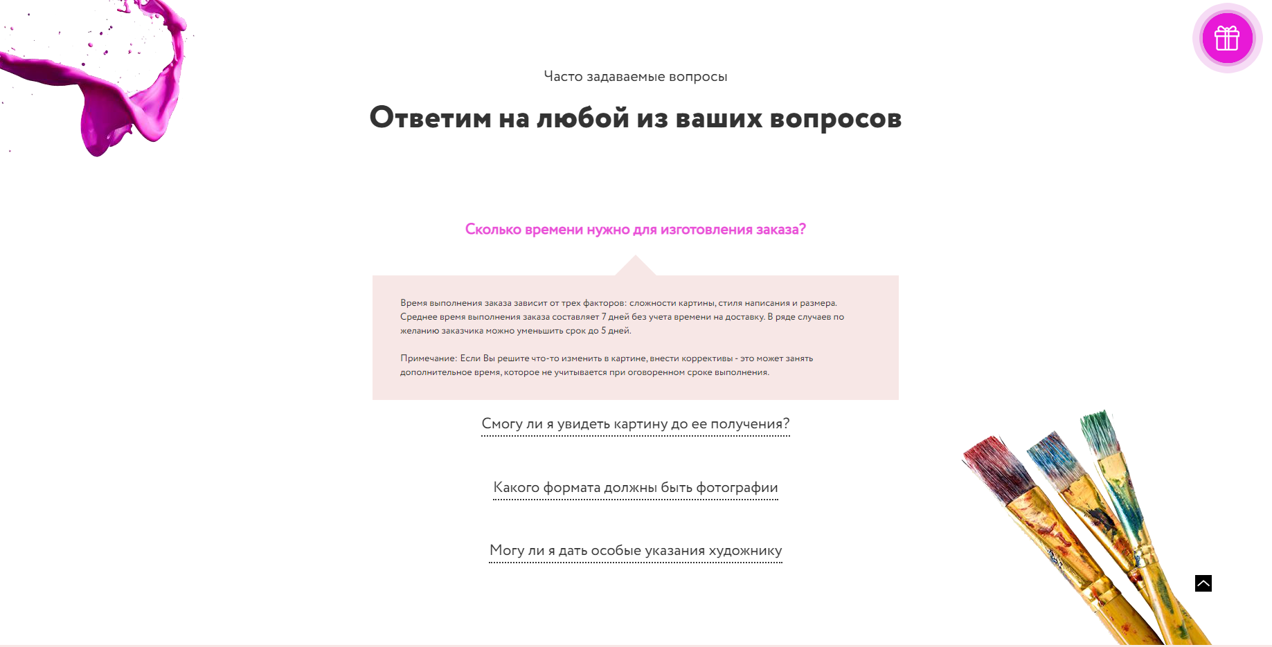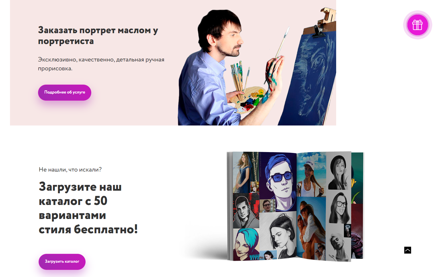 Лендинг для art студии, разработанный на CMS WordPress