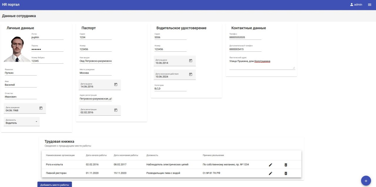 Приложения для работы сотрудников отдела кадров. Сотрудники отдела кадров добавляют\редактируют и удаляют профили текущих сотрудников.