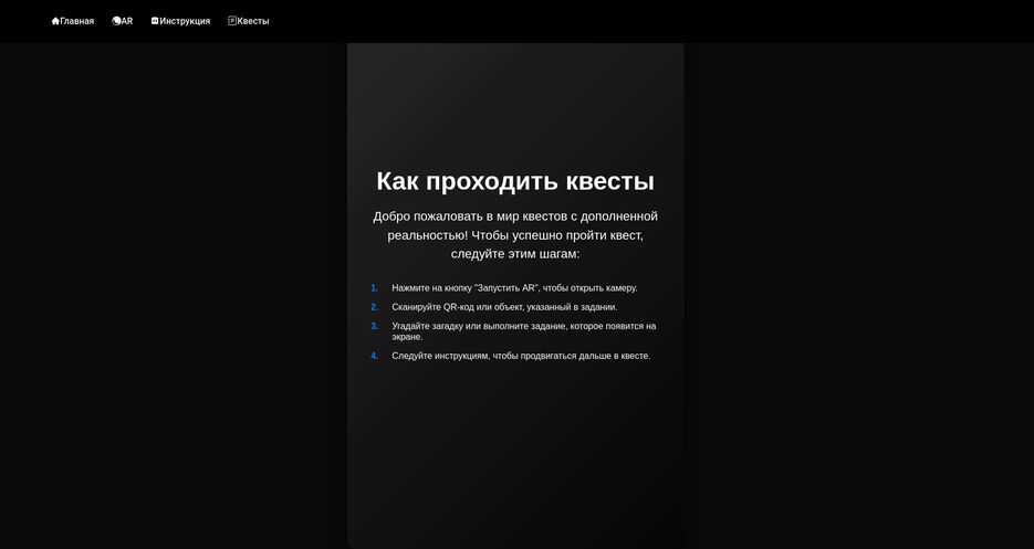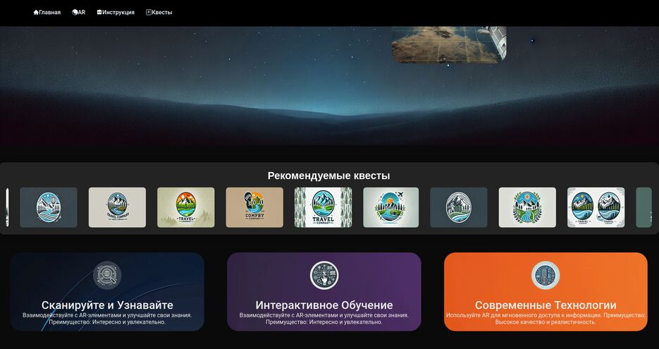 Веб-приложение, разработанное командой за 3 дня для IT-Fest, использующее технологии дополненной реальности (AR). Пользователи могут наводить свои устройства на исторические объекты и получать информацию о них. Приложение построено на Next.js и TypeScript с интеграцией AR-функционала через 8th Wall Studio. Включает интерактивный контент, AR-экспозиции и квесты. Создана админ-панель Ruscut для управления контентом и Telegram-бот для помощи.