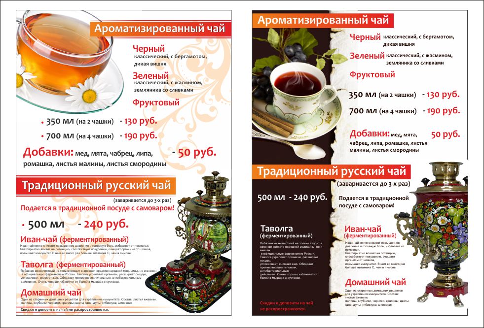 Меню для кафе