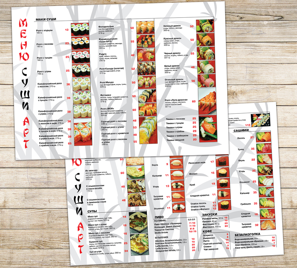 Временное меню для суши-бара формат А3, двухсторонняя печать, ламинация(мат)
